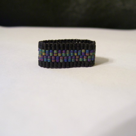 | Matte Black and Matte Rainbow Blue Delica Beaded Peyote Stitch Ring |